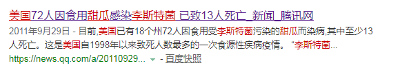 因为食用了遭李斯特菌感染的香瓜,导致李斯特菌感染在美国11个州蔓延。据统计,共有16人丧生,因此感染致病的人数达到72人。